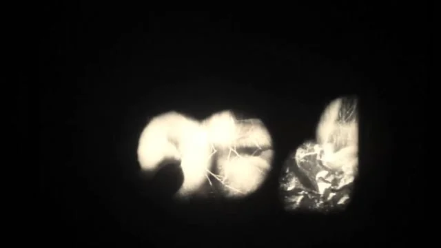 ‘Opaquing’ extends and magnifies those accidents into something more purposeful. Using black ink and clear film I catalogued details and textures of my thumbs, hands and fingerprints; run through the projector, the rapid succession of prints become rhythmic, animated and abstracted.